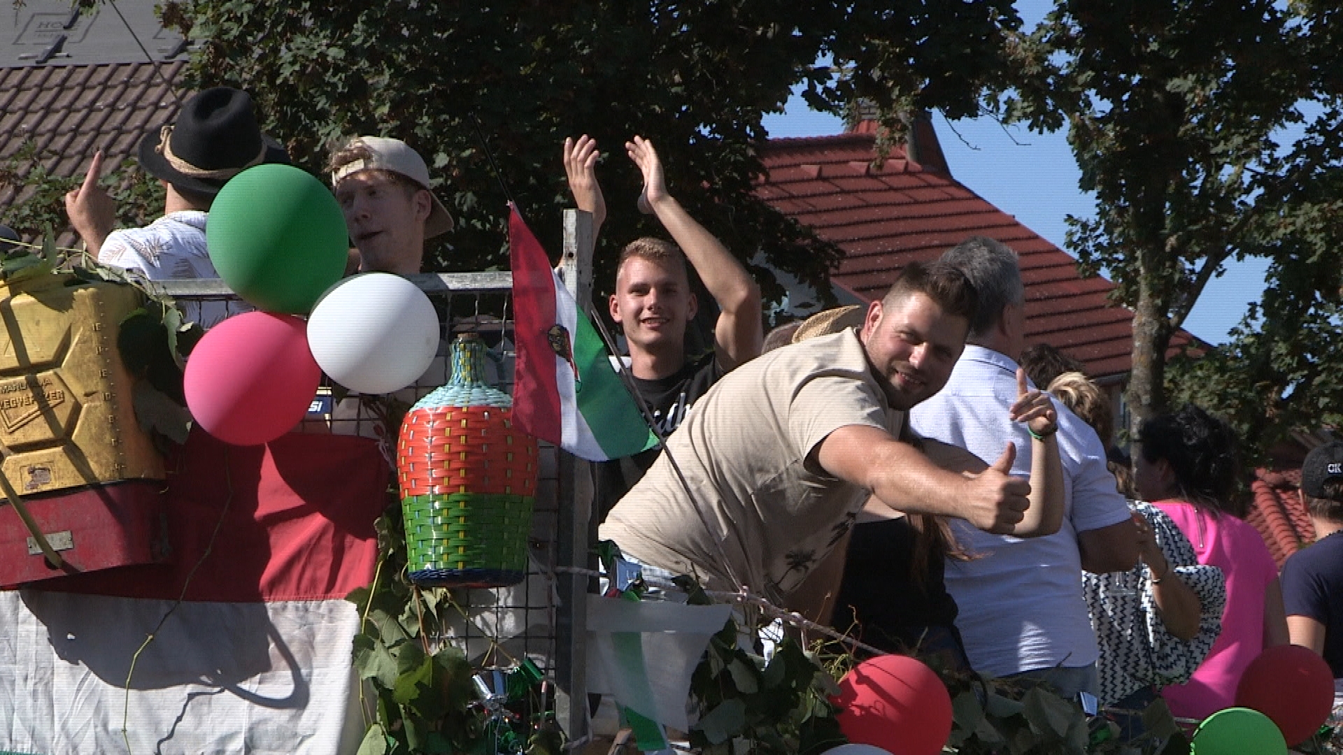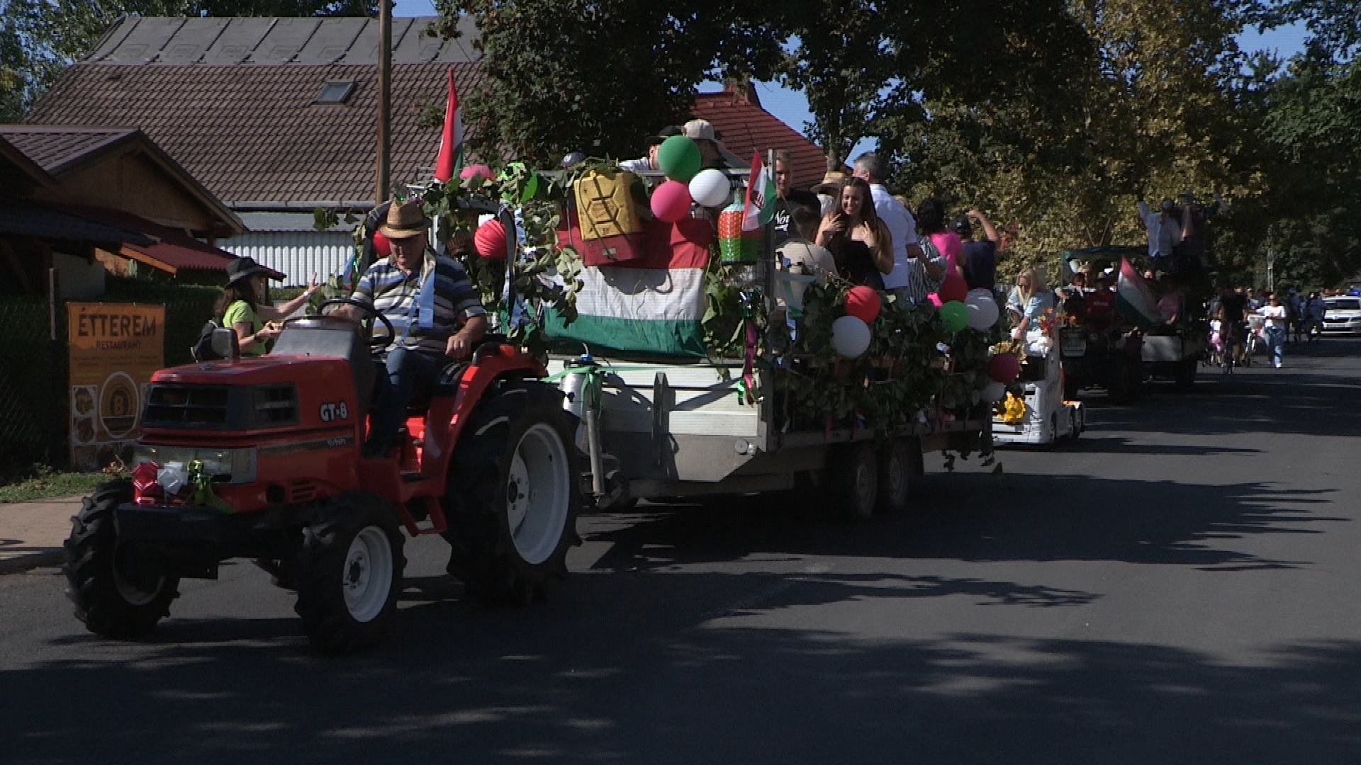 A Gyenes Néptánc Együttes tagjai énekszóval kísérve vonultak végig a menetben. A felvonulás vidám, jó hangulatban telt: a civil szervezetek mellé az óvodások, iskolások, valamint a település lakói is csatlakoztak. A menetet nemcsak lovaskocsikon ülők, hanem traktorokon táncoló fiatalok is színesítették. „Nagyon jó a társaság, a hangulat, a helyszín. Minden nagyon jó. Nagyon jó.” - mondta Huszár Zsófia.