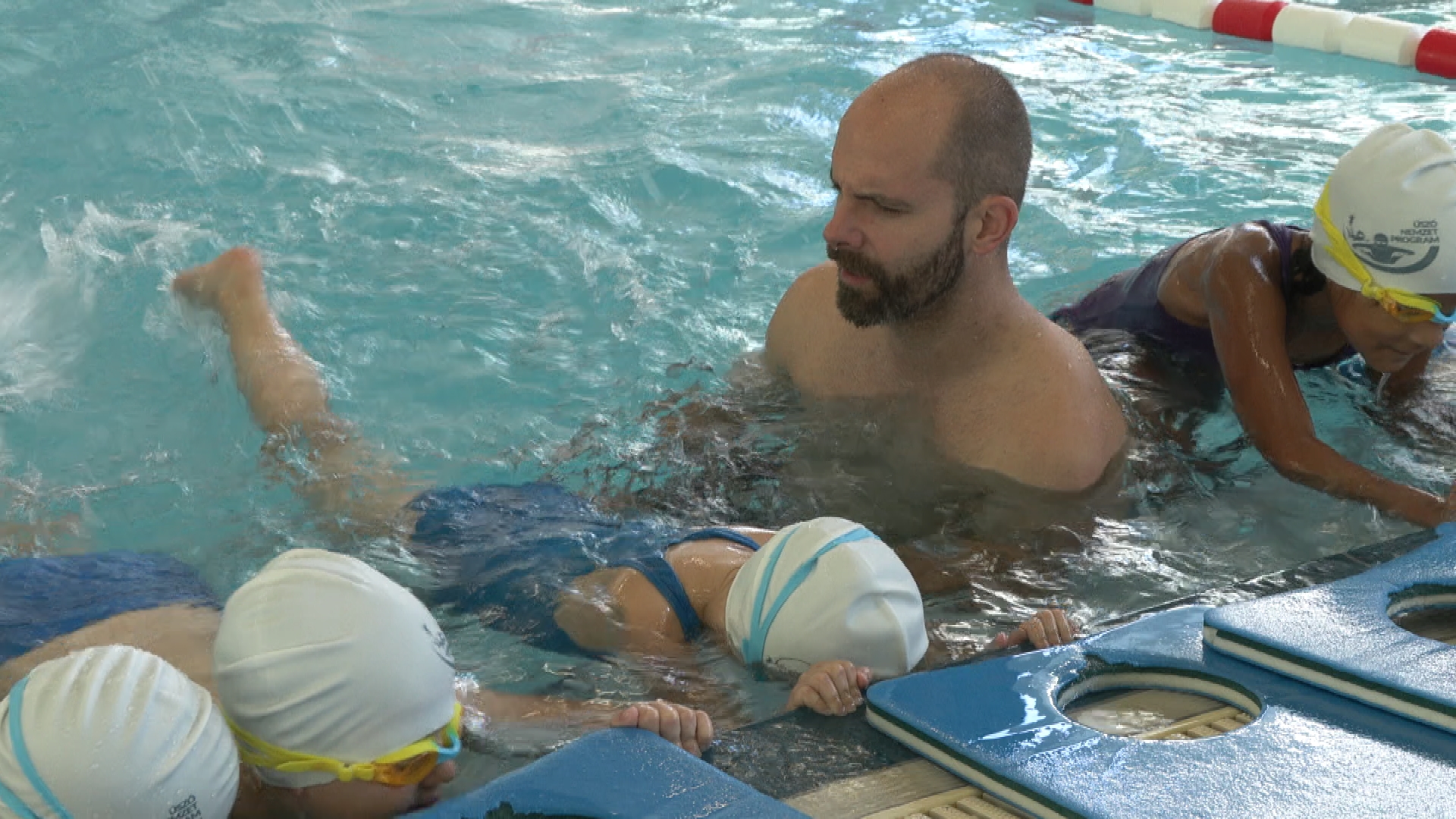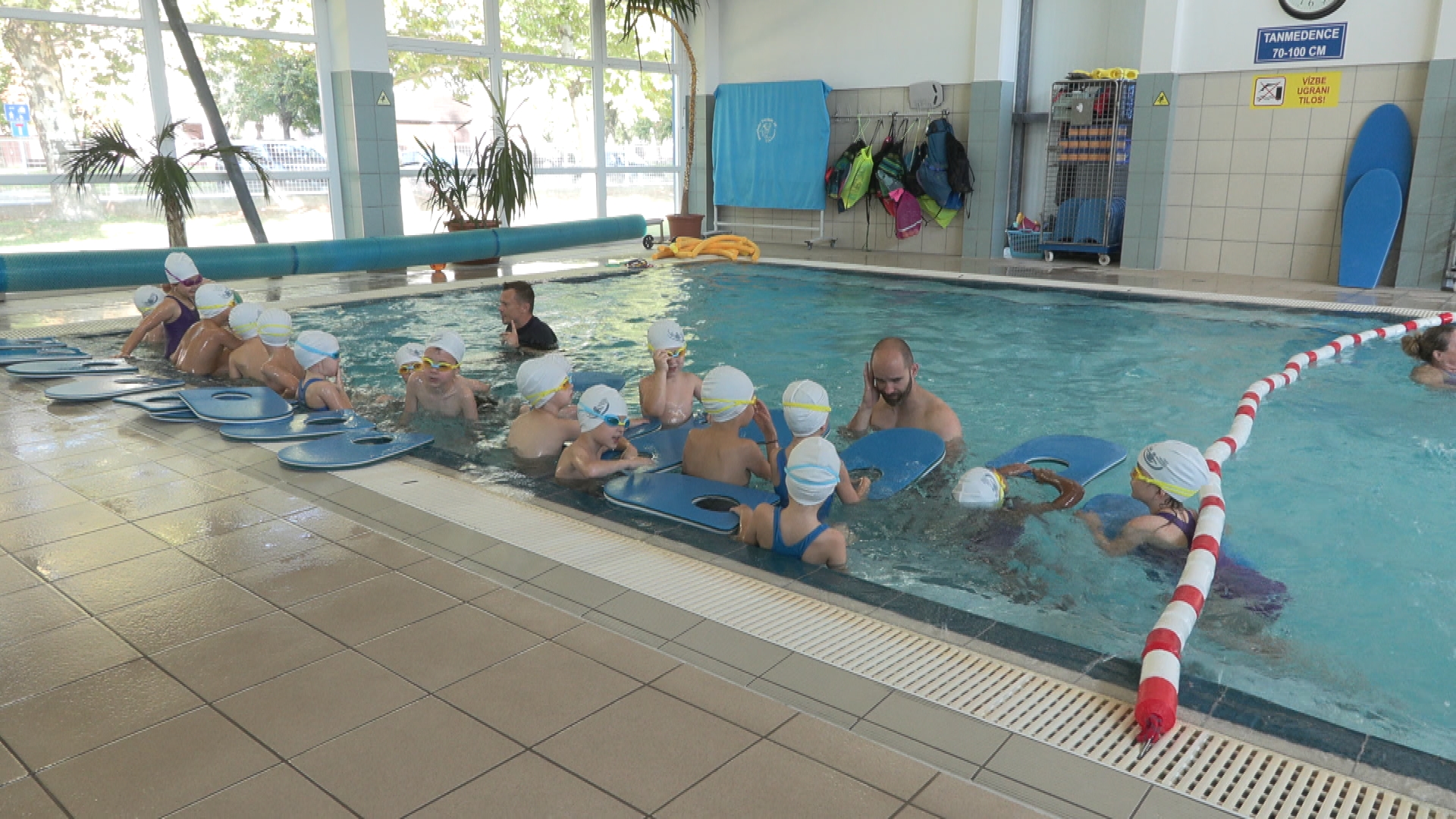 „A legelső lépcsőfok, hogy beledugják a fejüket a vízbe, utána siklanak a vízen, utána átkerülnek a nagy medencébe, hogy ott is tudják gyakorolni a gyorsúszó, meg a hátúszó lábtempót. Innentől kezdve a hátúszás, mellúszás és a végén a gyorsúszás is becsatlakozik, de nem elfejelendő hogy megtanulnak vízből menteni is a gyerekek és önmentést is, tehát ha beesnek vízbe, akár csónakból, nyáron, akkor taposni tudnak és egy helyben fenntartják magukat, nem süllyednek el” - nyilatkozta Szántó Kata helyi koordinátor.