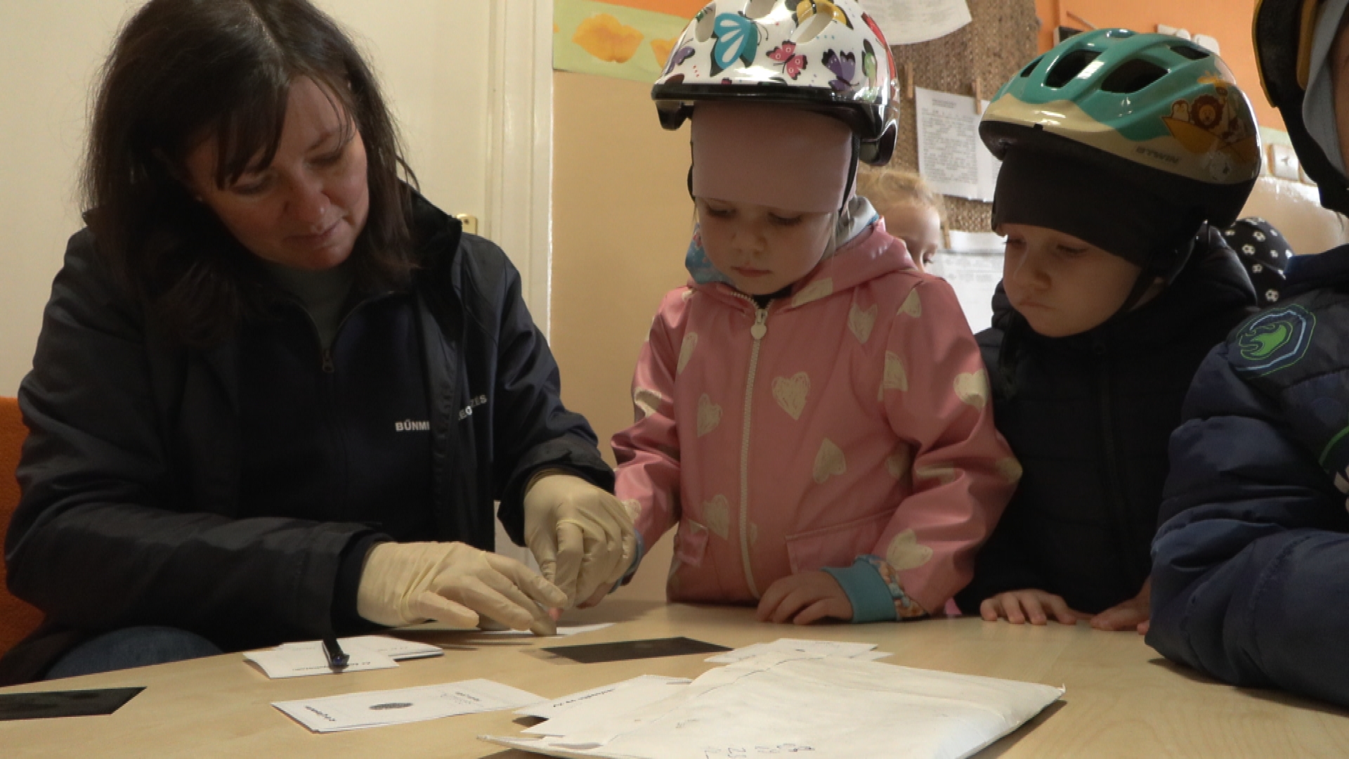 A gyerekek kipróbálhatták, milyen ujjlenyomatot adni. Névre szóló papírt kaptak, amit haza is vihettek.