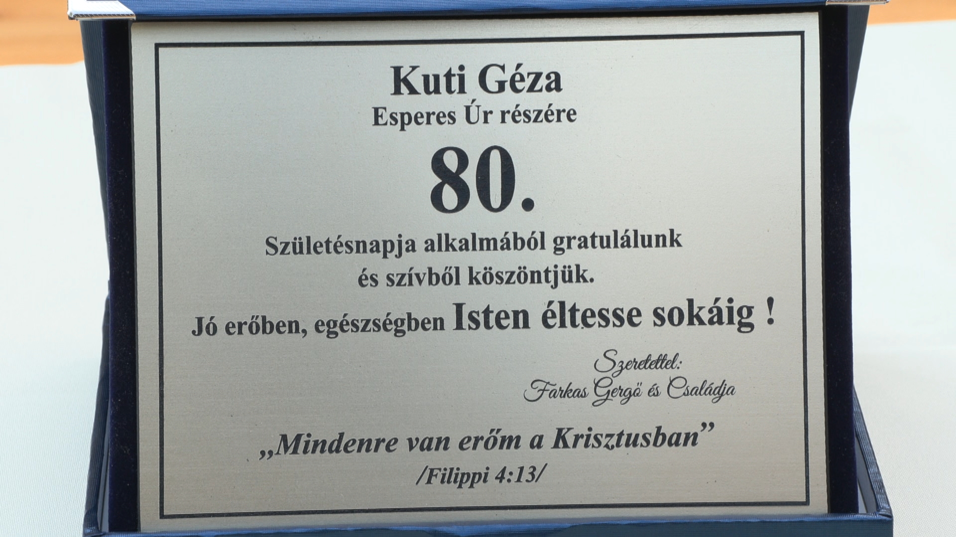 A meghitt pillanatokban köszöntötte Henter Lóránt is az a házaspár akiknek esküvőjén először orgonált 30 évvel ezelőtt Keszthelyen a marosvásárhelyi születésű kántor és azóta is Keszthelyen szolgál . Henter Lóránt a presbiterek vezetőjétől vehette át az ajándékot."Óriási segítséget kaptam a gyülekezettől, az esperes úrtól. Igazából21 éven keresztül együtt szolgáltunk jóban, rosszban és utána következett a nagytiszteletű Zichy Emőke tiszteletes asszony."- mondta el a kántor.