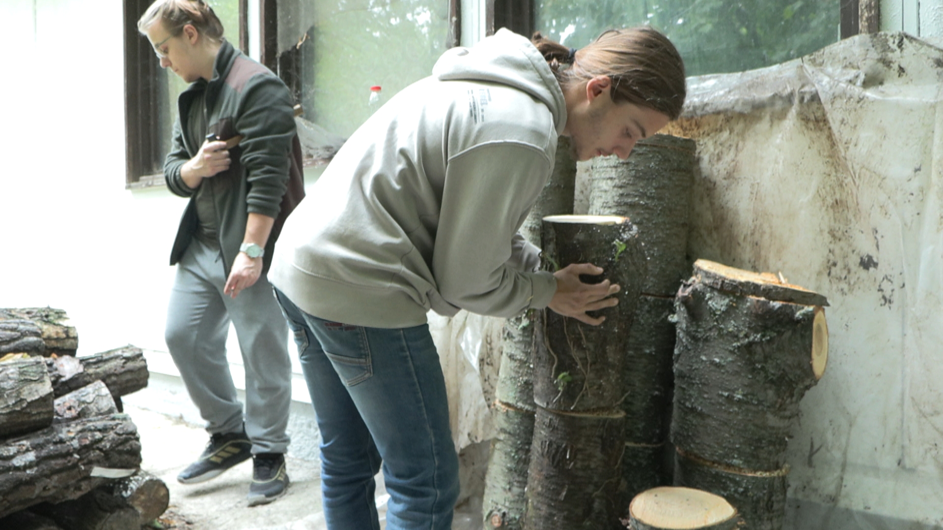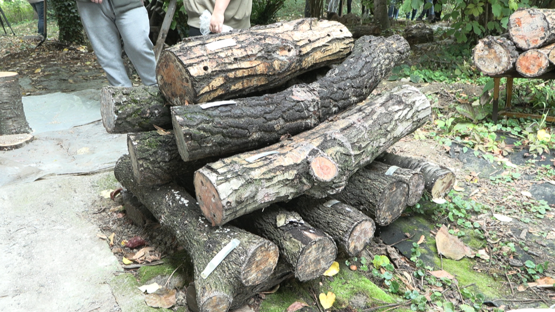 Puha- és kemény fára is lehet oltani, fontos hogy egészséges legyen a rönk. Az oltóanyag felfőzött gabonából, mészből, gipszből és természetesen gombaspórából áll. Az oltóanyagot a frissen vágott rönkre terítik, majd lefedik a koronggal, végül rászegezik – így készül a termőtest. Ezt követően mehet is a földbe, és már csak várni kell. A Botanikus kertben most laskát oltottak, de shiitake és ördögszekér gombát is termesztenek.