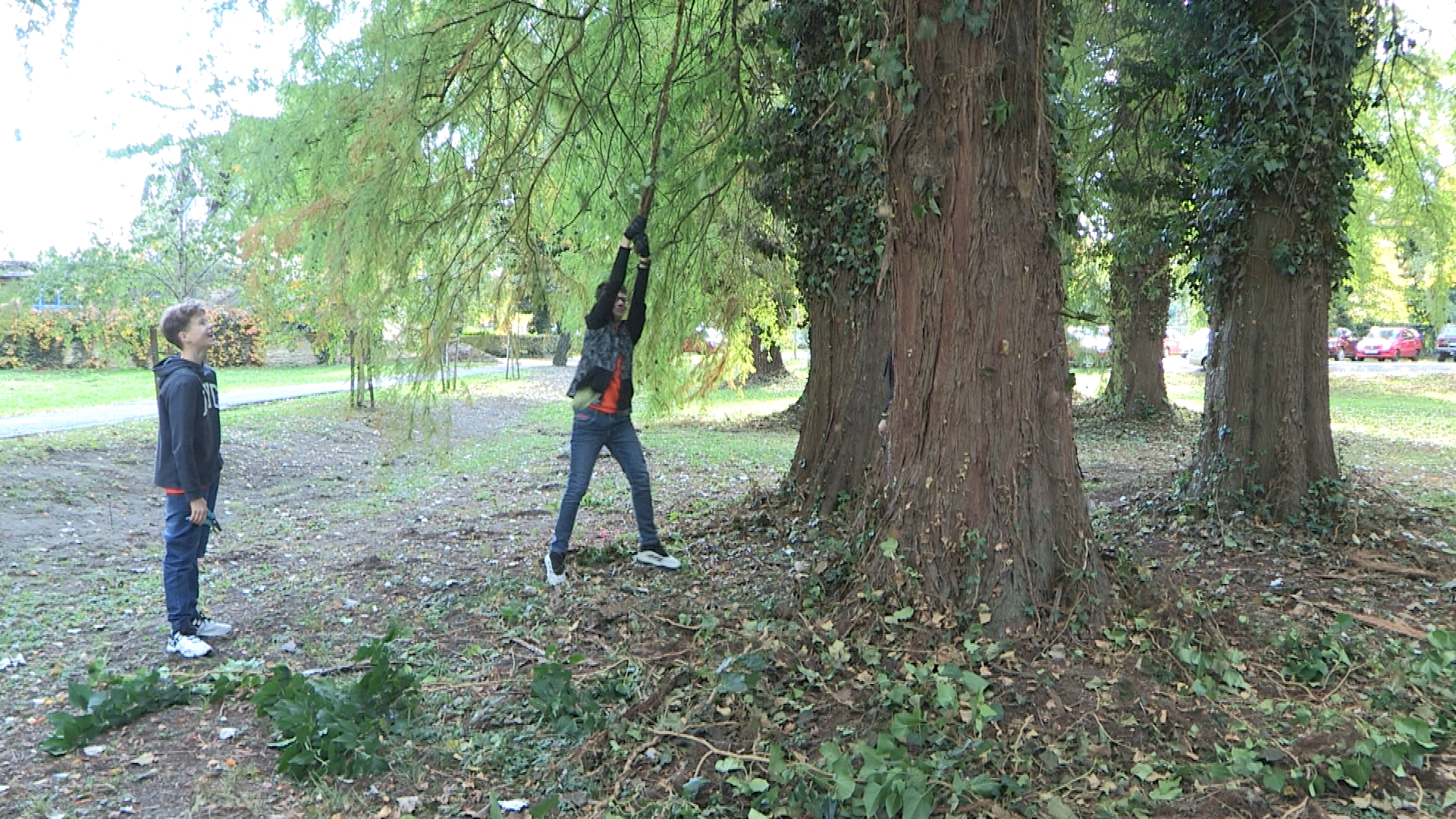 A Helikon park Munkácsy utca felőli részén kezdtek dolgozni a Keszthelyi Közgazdasági Technikum diákjai. A borostyán eltávolítása komoly kihívást jelent: a vastag indák magasra nőnek a fákon, és nehéz őket lehúzni. A növényt érdemes minél fiatalabb és zöld állapotában eltávolítani, ekkor könnyebben szabadítható meg a léggyökérzettől. A diákok kitartó munkájának köszönhetően újabb területen lélegezhetnek fel a fák, miközben személyes élményt szereztek arról, mit jelent tenni a környezetért.