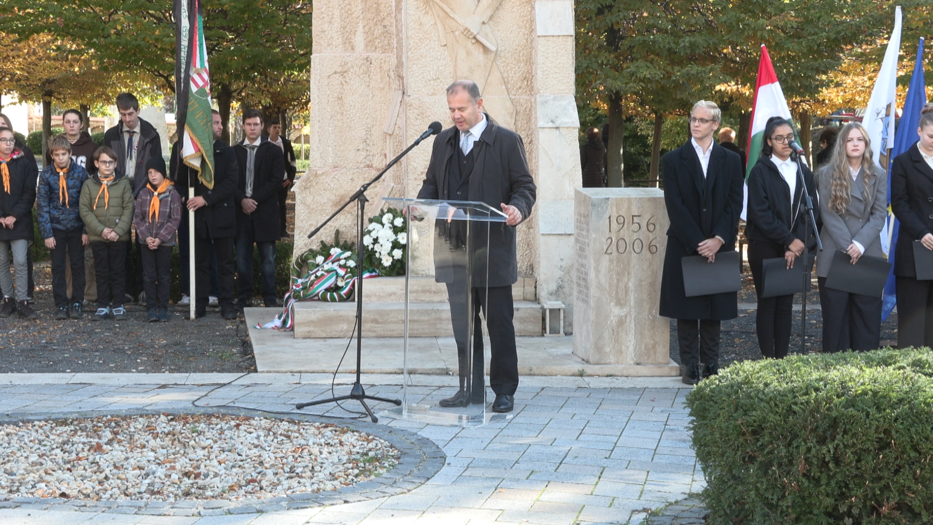 Az ünnepség szónoka, prof. dr. Horváth Miklós hadtörténész, egyetemi tanár azt mondta, 1956 nélkül ma Európa sem lenne az a szellemi, gazdasági és politikai közösség, melyben Magyarországnak helye van. Kiemelte, a történelem ritkán ismétli meg önmagát, azonban ’48 és ’56 eseményei között az a hasonlóság, hogy mindkét esetben megüzenték a világnak, hogy egy kis európai nép a döntő pillanatokban méltósággal vette kezébe a sorsát és bár véráldozattal, de kivívta a szabadságát.