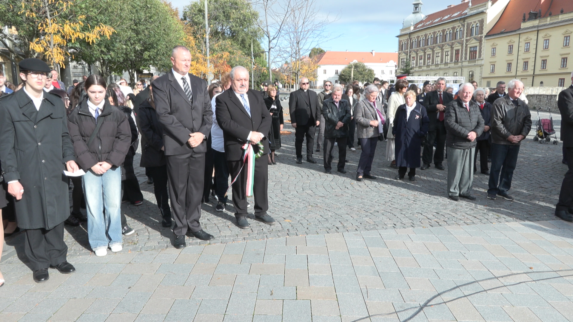 Sokan gyűltek össze a Fő térre, hogy tiszteletüket fejezzék ki az ’56-os szereplők és tetteik előtt. Dr. Tóth Gergely polgármester beszédében kiemelte, a zsarnokságnak ezer arca van. 69 évvel ezelőtt fellázadt az egész nép a zsarnokság egy arca, a szovjetek ellen. Hangsúlyozta, az is egy arc, amelyik gondolatainkat és választásainkat akarja irányítani.
