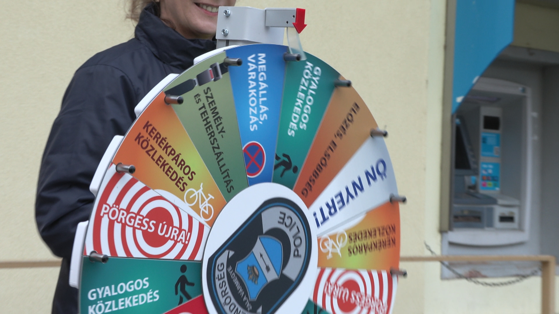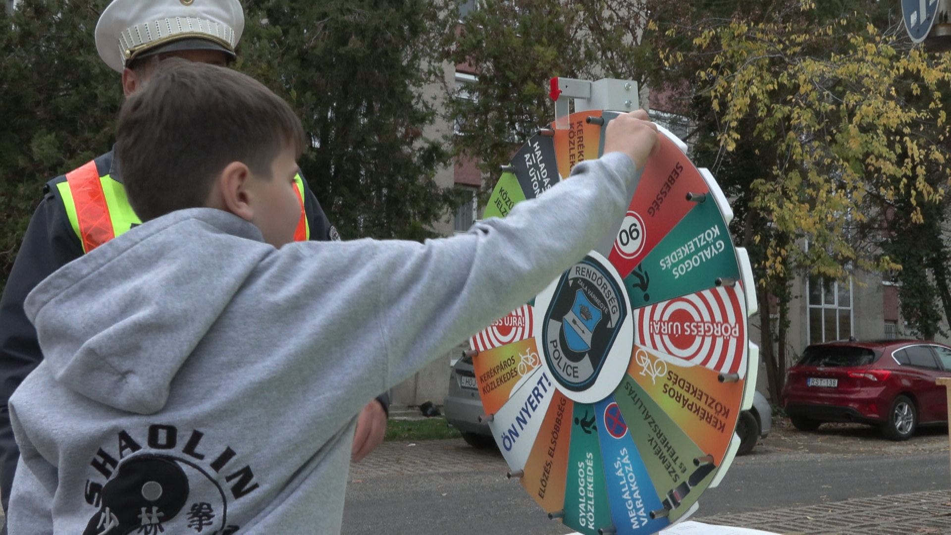 Főként diákok érdeklődtek, de több felnőtt is próbára tette tudását. Olyan szerencsés is akadt, akinek nem kellett válaszolnia az ajándékért, Németh Áronnak olyan cikkelynél állt meg a kerék, amivel azonnal választhatott valamit. Ettől függetlenül élvezettel próbálta ki a rendőrségi játékot.