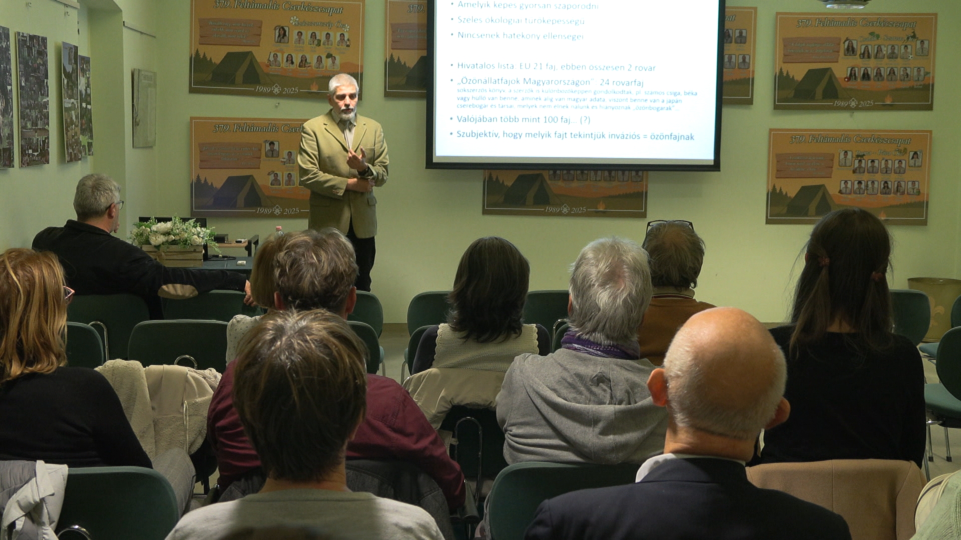 Kondorosy Előd egyetemi tanár a magyarországi biológiai invázió jelenségét járta körül, különös tekintettel az idegenhonos, özönfajjá váló fajokra. A téma értelmezése nem egységes, még a szakemberek között is eltérések mutatkoznak. A MATE Szabadegyetem egy olyan programsorozat, melynek az a célja, hogy az intézmény és a külső közösségek között hidat építsen; elősegítve a közös gondolkodást és tapasztalatcserét - fontos témákban. Az egyetemi tanár elmondta: "Van egy csomó dolog, ami azért érinti az egyszerű embert is. Hogy miért ez lett az első előadás? Állítólag azért, mert hát azért ismerek egy pár embert itt Keszthelyen, meg ez olyan téma, ami talán többeket érint. Ha más nem, mindenki találkozott ezekkel a különböző bevándorló rovarfajokkal, főleg az általuk okozott kellemetlenségekkel."