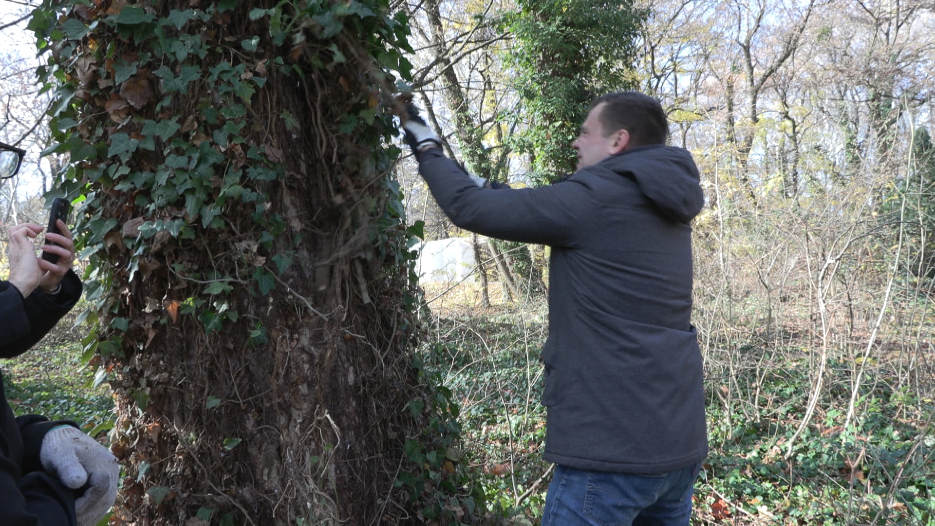 Folyamatosan szépítenek a helyi civilek a Helikon parkban. Nagy erőkkel tisztították meg közösen a fákat az elburjánzott növénytől. Szerdán Litkai Gergely humorista is csatlakozott hozzájuk, a borostyánmentesítésen túl fát is ültetett.