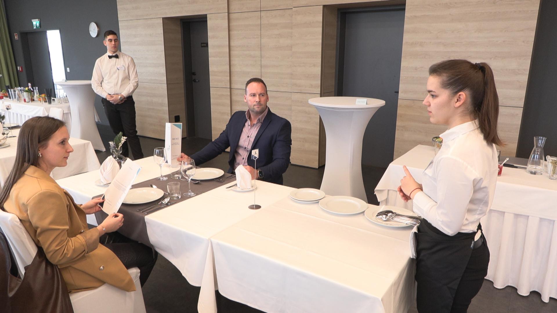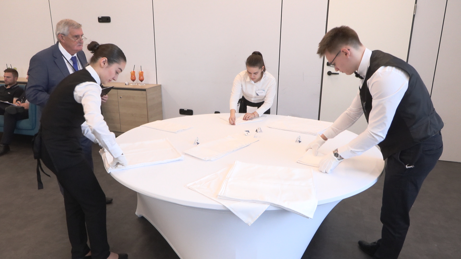 Összetett feladatot kaptak a döntősök. Üzleti ebédre, két fő részére, menükártya alapján kellett megteríteni az asztalt a rendelkezésre álló eszközökkel. Poharakban kitöltve, illatolással és szemrevételezéssel kellett a rövid italokat felismerni. Nyolc darab különböző ruhaszalvéta kreatív hajtogatásában is megmutatták tudásukat a versenyzők. A menükártyán szereplő kevert italok készítése sem maradt el. A szakmai versengésben még tapasztaltak is izgultak. Horváth Berta győri egyetemista. Börczi Balázs szakértő vezetése alatt egy 120 napos intenzív felkészítés segítette a versenyre."Én voltam aki képviseltem a EuroSkillsen Magyarországot előző évben. Ugye ez most szeptemberi verseny volt, 9-től tartott 12-ig.Nagyon nagy löketet adott, hogy most újra itt lehetek. Nagyon nagy tapasztalatot szereztem ez alatt a verseny alatt és hihetetlen lehetőségek nyíltak számomra. Nagyon hálás vagyok, mert szakmailag és magánéletben is nagyot tudtam fejlődni. Úgyhogy nagyon hálás vagyok, hogy itt lehetek újra."- mondta Horváth Berta.