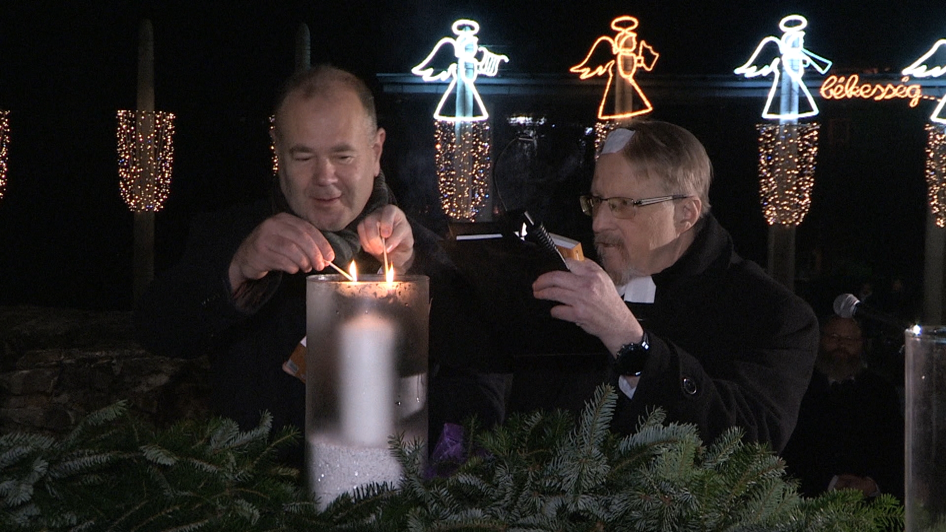 Dr. Tóth Gergely és Honthegyi Zsolt lelkész együtt gyújtották meg a remény lángját a városi koszorún. A gyertyagyújtás során Gárdonyi Zoltán - Oh, te üdvadó című kórus művét hallhatta a közönség a Helikon Kórus előadásában.