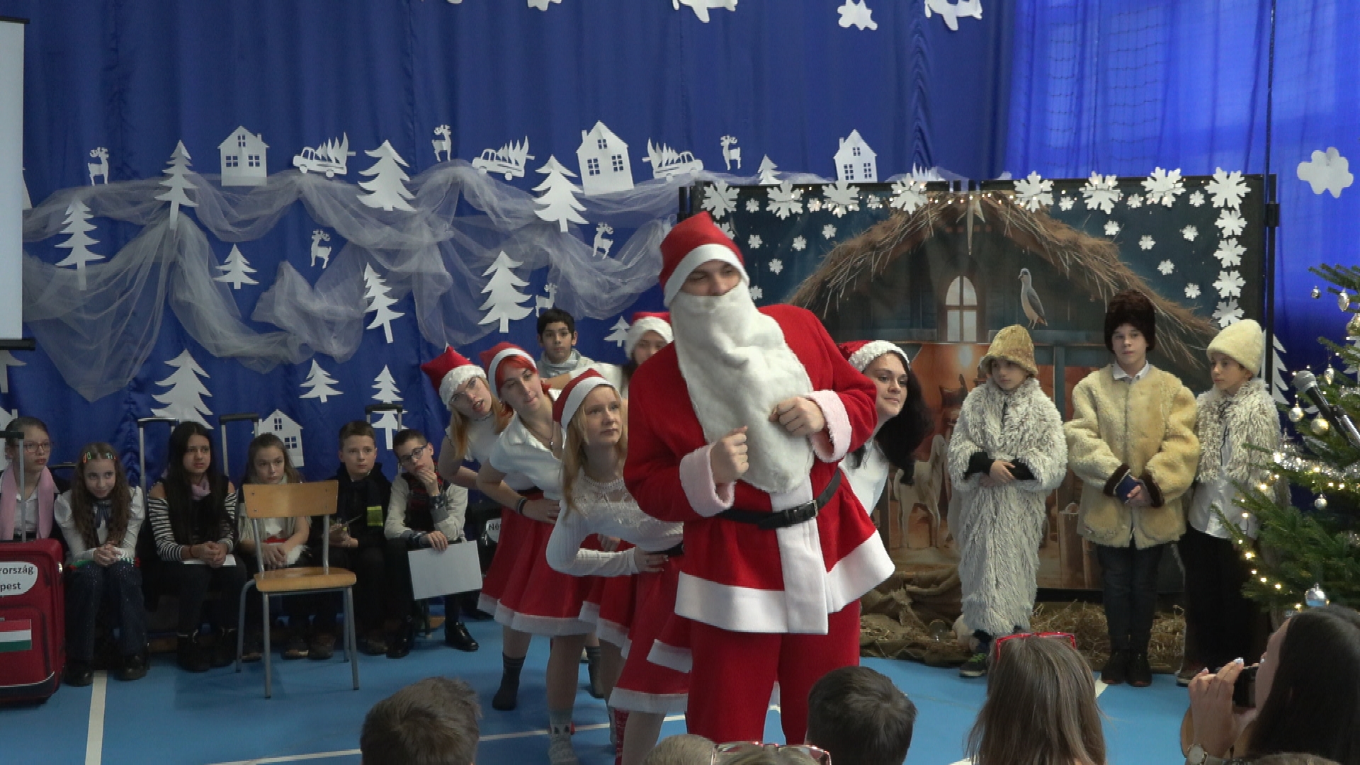 Meghitt ünnepi hangulat töltötte be a Zöldmező utcai iskola tornatermét. Gyönyörű fények, Jézus születését ábrázol karácsonyi díszlet. Az iskola tanulói reptéri hangulatot idéztek meg ,ahol a gép késése várakozásra kényszerítette az utazókat. Így elkezdtek mesélni országuk karácsonyi szokásairól.A tanulók felelevenítették a várakozást,a dalokat, amiket mindenki énekel , hallgat advent idején. A diákok nagy lelkesedéssel és odaadással álltak a közönség elé. A műsor a szeretet az összetartozás és az ünnep valódi jelentésére irányult.