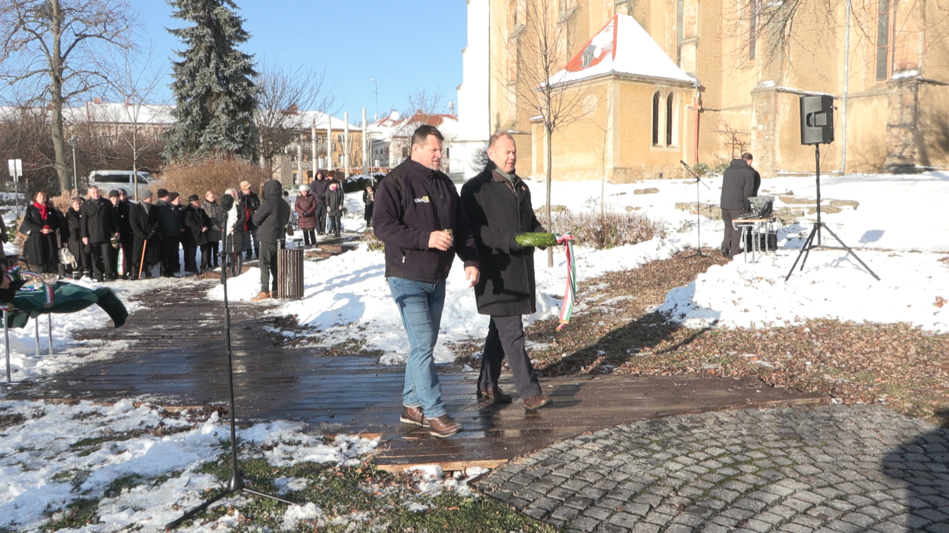 A megemlékezésen a város, a szervező Goldmark Károly Művelődési Központ, a Bethlen Gábor Nyugdíjas Klub és a TISZA párt helyezett el koszorút a világháborús emlékműnél. A résztvevők mécsesekkel fejezték ki tiszteletüket a hősi halottak előtt.