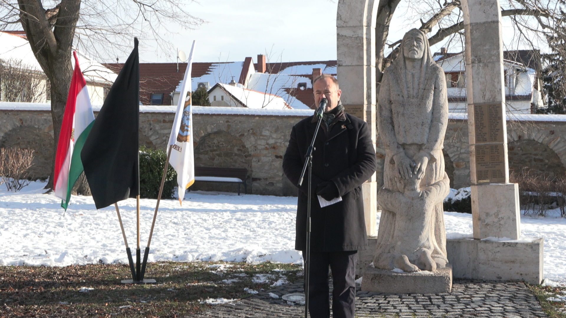 „Kényelemben, jó ruhában állunk itt és talán egy fél órát kinn lennünk a szabadban. Akkoriban hetekig, hónapokig tartott ez az egzódus, aminek a vége az áttörés volt Voronyezsnél” - kezdte beszédét dr. Tóth Gergely polgármester. Felidézte, nagyapja is katonatiszt volt, ott volt a Don-kanyarban, tiszti szolgája mentette meg az életét. Dr. Tóth Gergely azt mondta, akkor olyan szövetségbe sodródtuk, ami háborúba kergetett minket és a magyar katonáknak nem egy szent célért kellett feláldozni életüket. A polgármester rámutatott, nagyon fontos, hogy kikkel lépünk szövetségbe, hogyan politizálunk. Most a minket védő NATO-t fenyegeti Oroszország, ami megtámadta a szuverén Ukrajnát. Az USA pedig a szintén NATO-tag Dániát fenyegeti Grönlanddal.