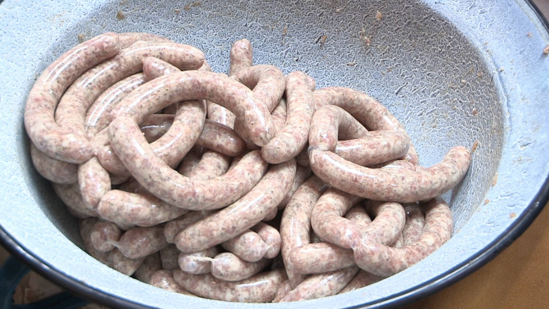 „Mi készítünk most fehérkolbászt, az ilyen bajor jellegű, meg hagyományos pirospaprikás sütőkolbászt.”- mondta Cserép András a Kallósdért Egyesület csapattagja.