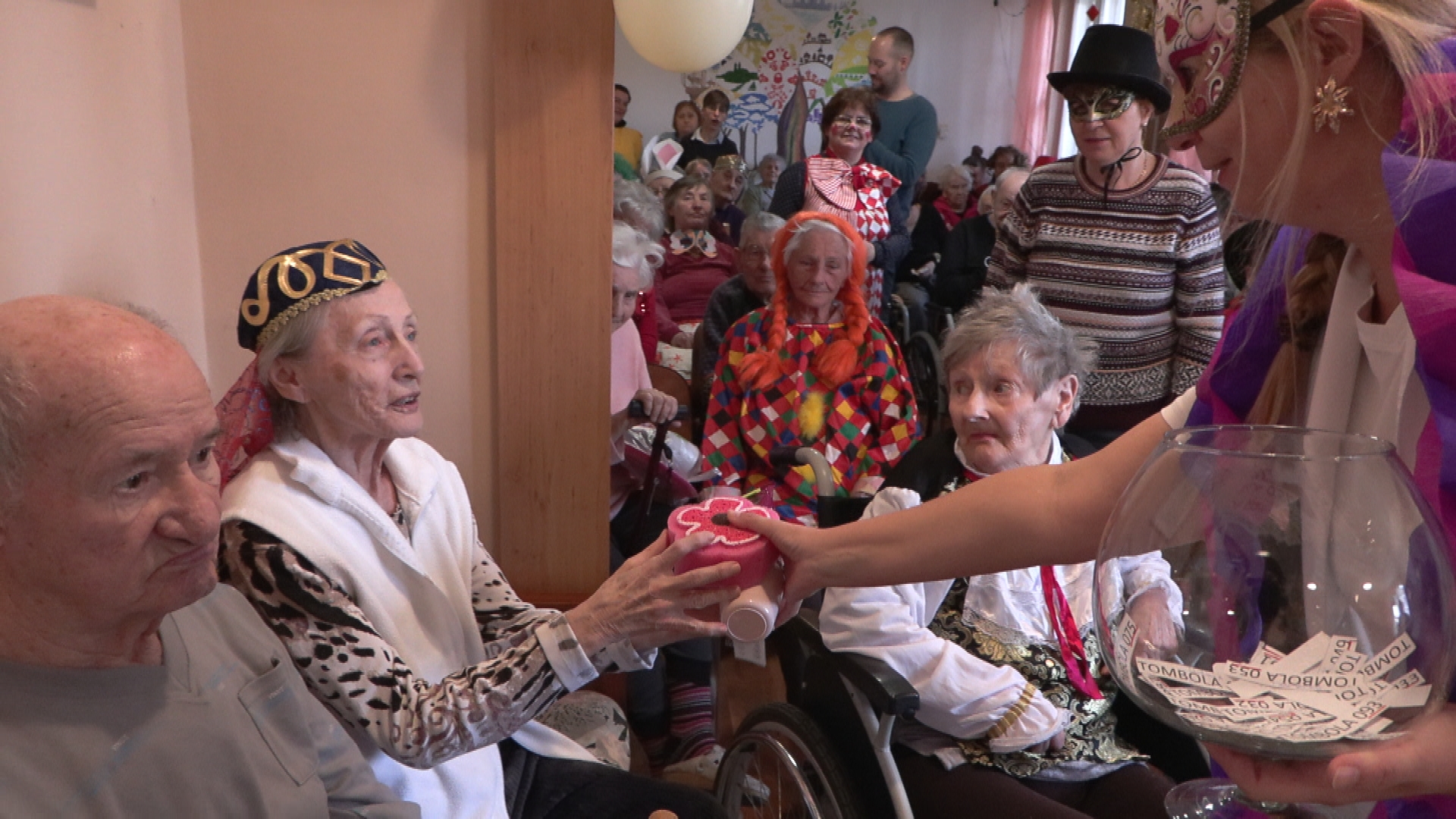 Virág, édesség, dísztárgyak, pipere holmi és cukrászdautalvány is gazdára talált a tombolán. A farsangi mulatságnak mindig ez a legkedveltebb mozzanata az idősek otthonában.