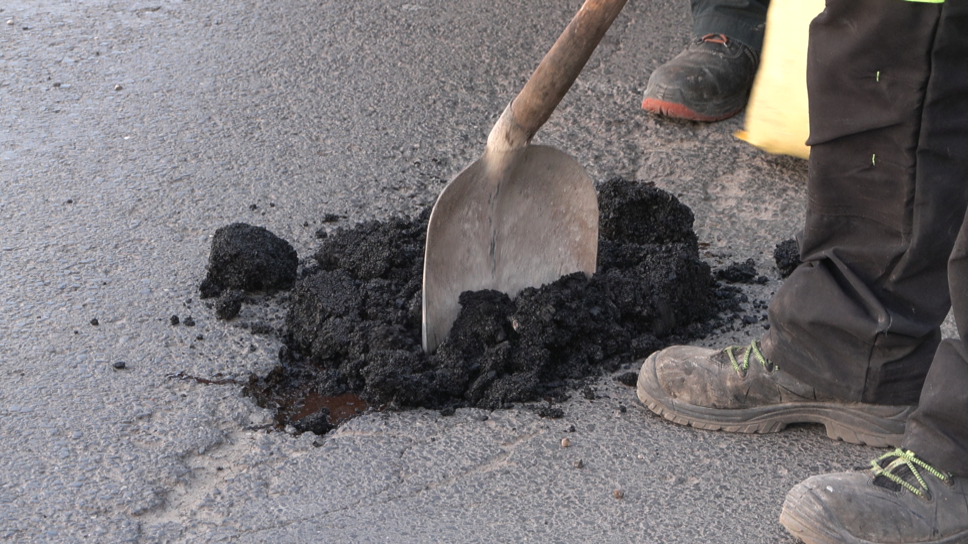 A Kossuth és a Balaton utca találkozásnál kátyúznak a VÜZ dolgozói. Hidegaszfaltot használnak. Ezt a keveréket hidegben is lehet használni, tömörítés után azonnal terhelhető a forgalommal. Hátránya, hogy kevésbé tartós, mint a melegaszfalt. A keverőüzemek azonban csak márciusban nyitnak, mert hidegben nem alkalmazható ez a technológia.