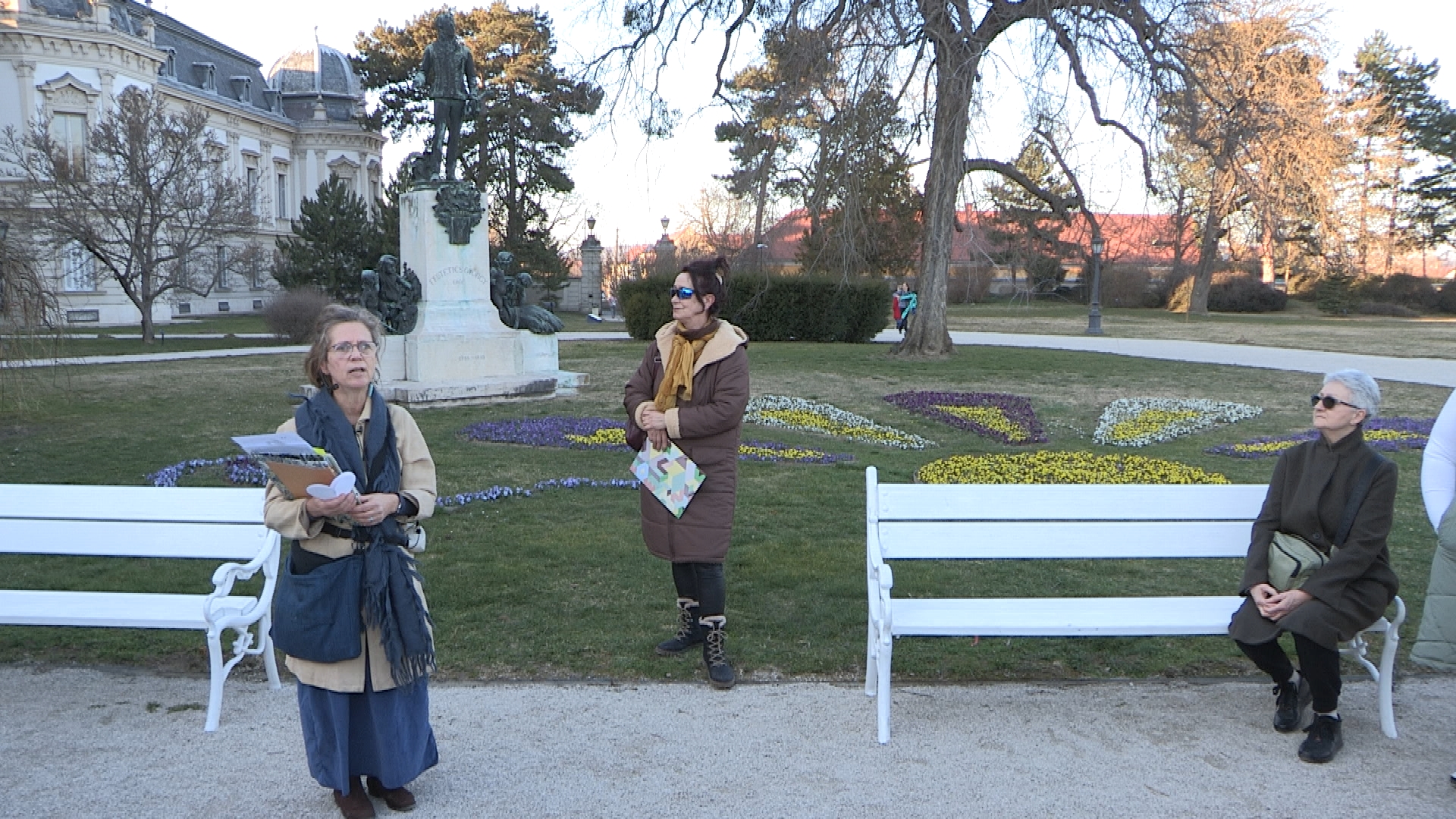 Tóth Adél idegenvezető beszélt a séta résztvevőinek arról, hogy a Festetics kastély fénykora mögött nemcsak ambiciózus férfiak, hanem művelt, erős, befolyásos nők is álltak. Festetics György, mint a kastély egyik legfontosabb építtetője, Bossányi Júliával kötött házasságáról mesélt elsőként. Kiről megtudhatták, hogy jelentős hozományt hozott a családba és társadalmi kapcsolatokat biztosított. A parkban több helyszínen is jártak és előadást hallhattak többek között Széchenyi Zsigmond feleségéről, Hertelendy Margitról, akit művelt nőként, mint társadalmilag kitaszított személyt, kegyelemből a kastélyban alkalmaztak. "Az estéket úgy töltötték, mint a régi időkben. Bridzseztek, társalogtak, koktéloztak és itt találkozott Széchenyi Zsigmond gróffal, akit szintén kitelepítettek. Ugye ő volt Sopronkőhidán, AVH üldözte. Kitelepítették, vagyis osztályidegen volt és Györökön élt egy családnál egy kis házikóban és vonattal mindennap ide beutazott és a kastélyban dolgozott segédkönyvtárosként. Illetve néha felkérték tárlatvezetésre. Nahát, itt szövődött az ő szerelmük. 27 évvel volt nála fiatalabb a felesége. Hertelendy Margitot egy éven belül feleségül vette."