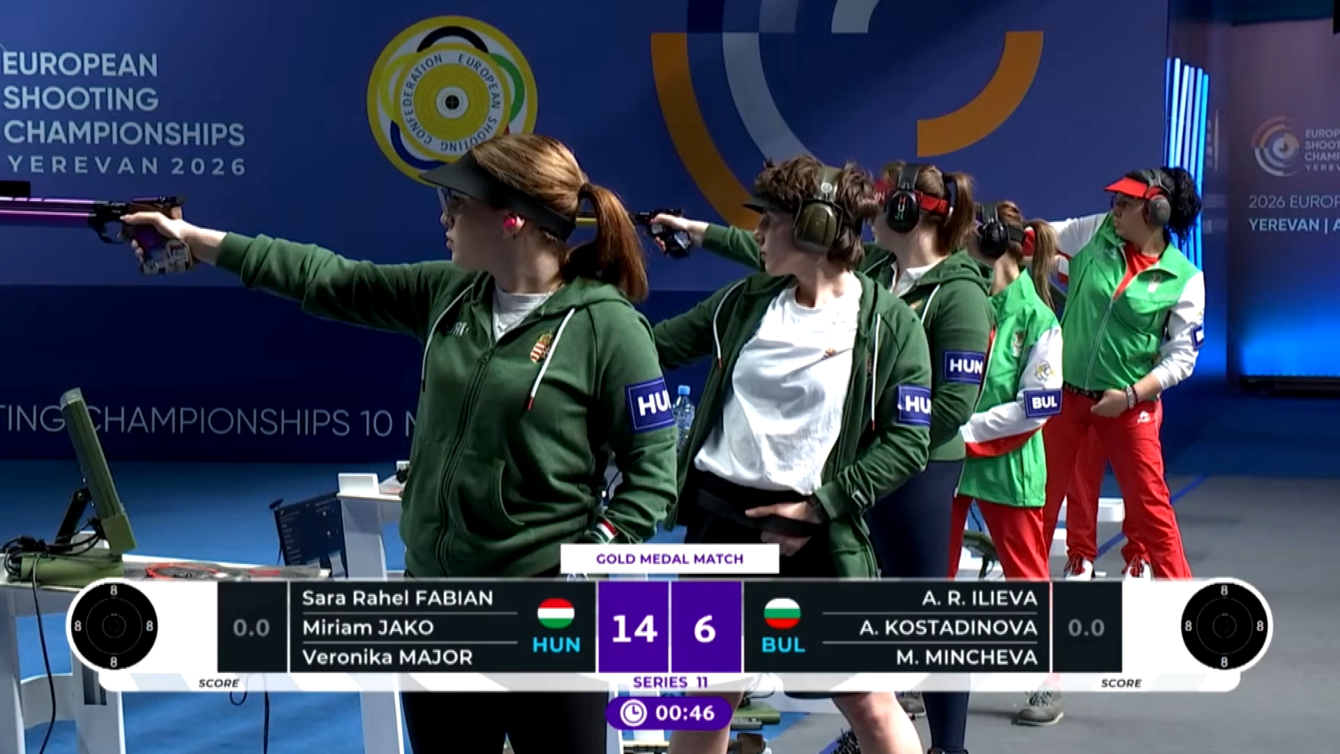 A záró női trió légpisztoly versenyszámban Fábián Sára Ráhel, Major Veronika és Jákó Miriam magabiztos győzelmet aratott a döntőben a bolgárokkal szemben. A BEFAG Keszthelyi Lövészklub bajnoka így megszerezte az ötödik aranyát Örményországban. Veronika csapatban, egyéniben, vegyes párosban, szólóban és trióban is a kontines csúcsára jutott. Keszthely díszpolgára már a négy arannyal is sporttörténelmet írt, korábban soha nem volt ilyen teljesítmény a sportág történetében. Ezt pedig megfejelte ma még egy ötödik aranyéremmel.