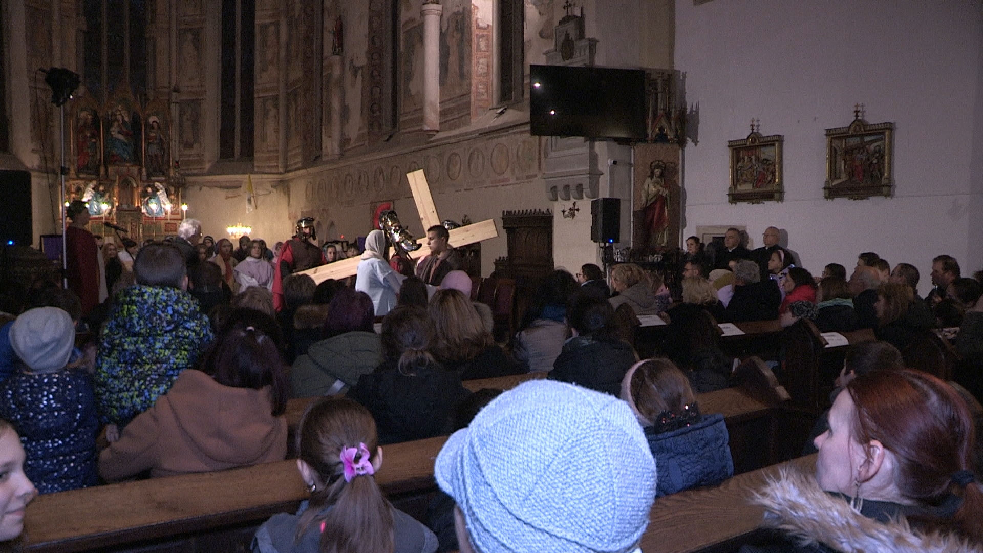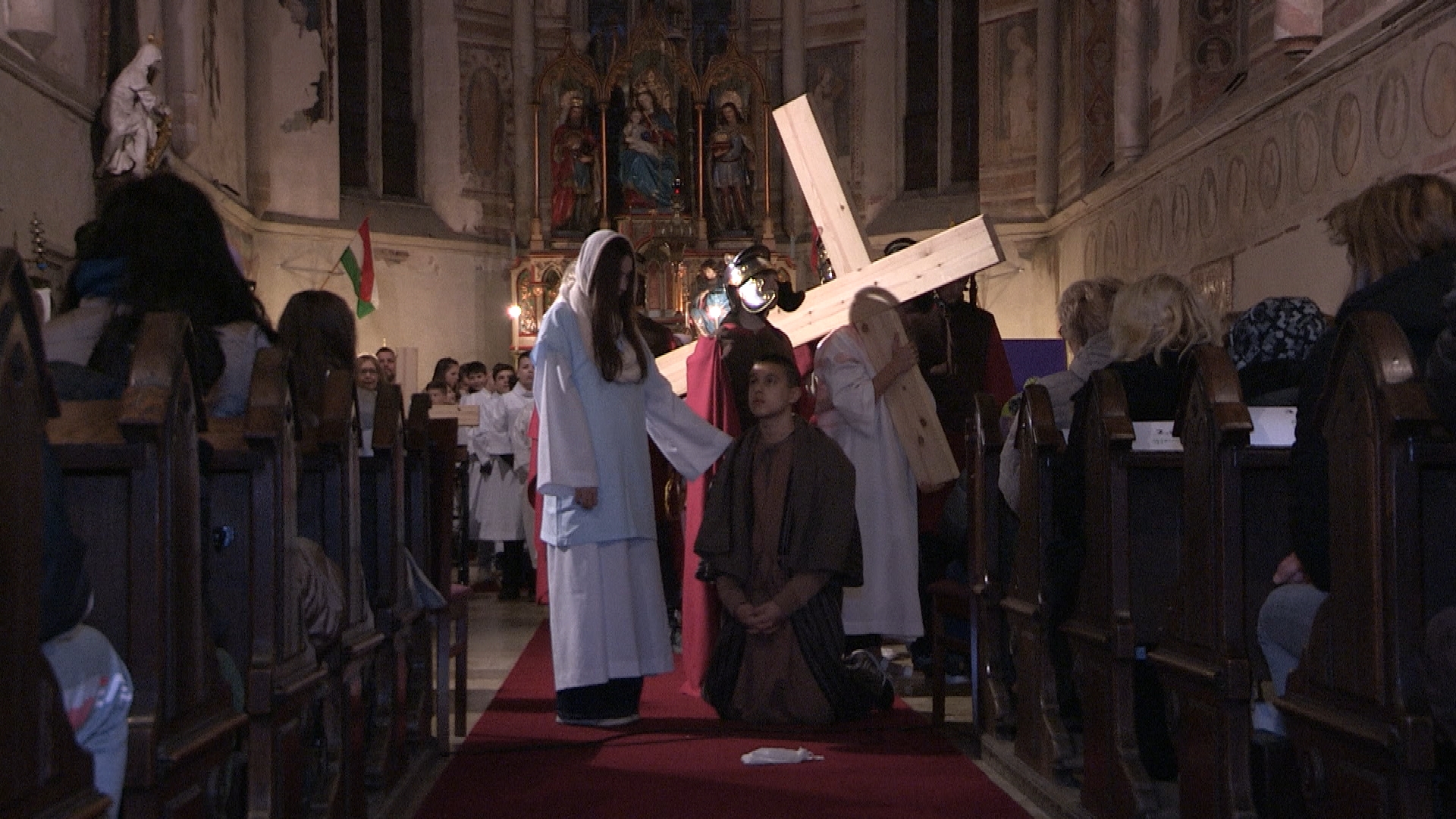 Az előadáson nemcsak az iskola tanulói, hanem felkért szülők és tanárok is szerepeltek. A produkció egy hagyományos passiójáték és a római keresztút elemeit ötvözte. Az alapot egy 18. századi csíksomlyói iskoladráma adta. A felkészítők ezt a diákokra szabva dolgozták át és keresztúti elemekkel egészítették ki. Takács Enrikó az egyik jelenetben Jézust személyesítette meg. Érzéseit így fogalmazta meg: "Engem erre a szerepre Adél néni és Ditta néni kért meg, mert megbíztak bennem. Én ezt szívesen elvállaltam, mert ez a jelenet, amit én szeretek, szerintem ez egy elég megható, érzelmes jelenet. Nekem tetszik ez a szerep."