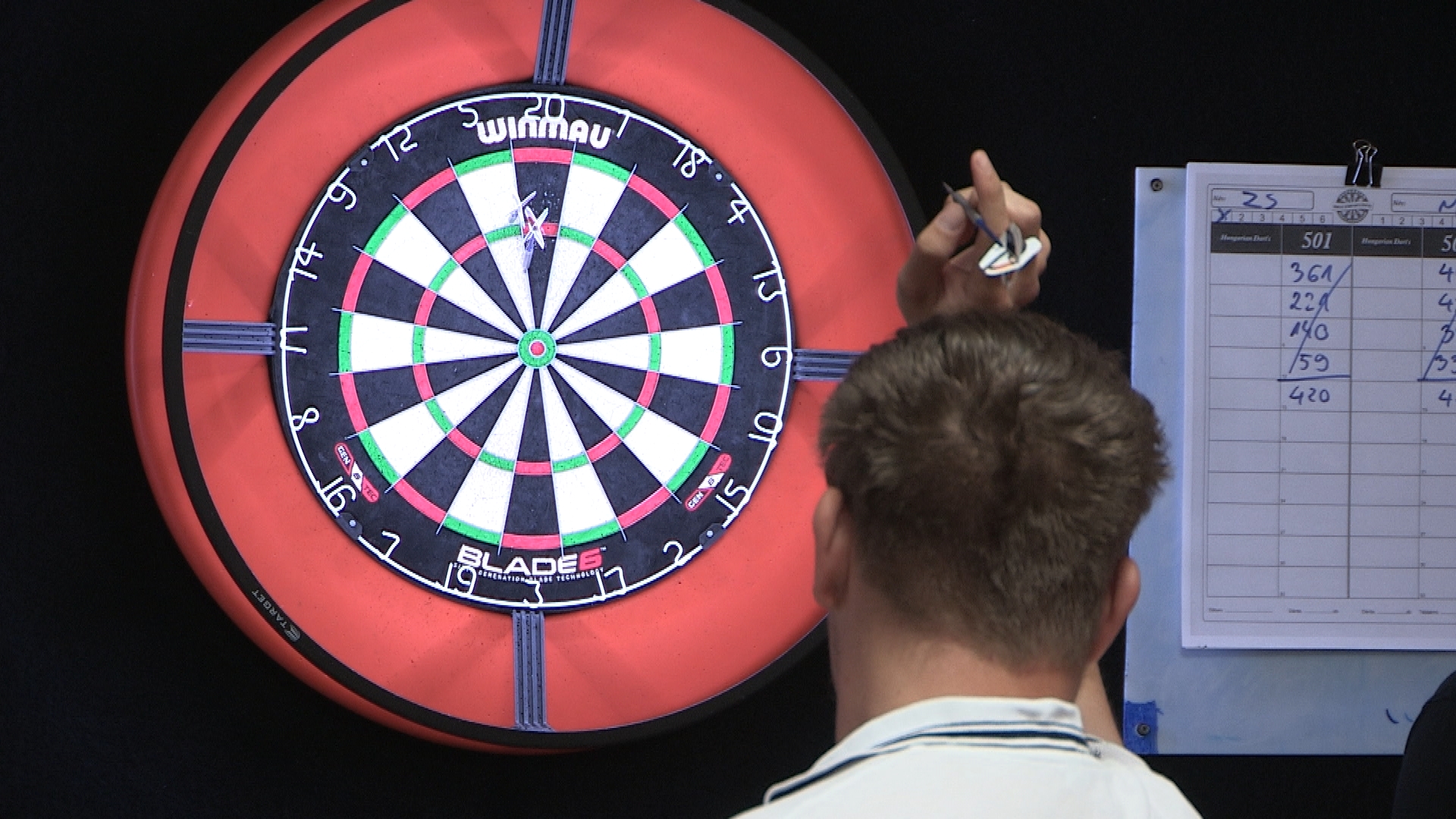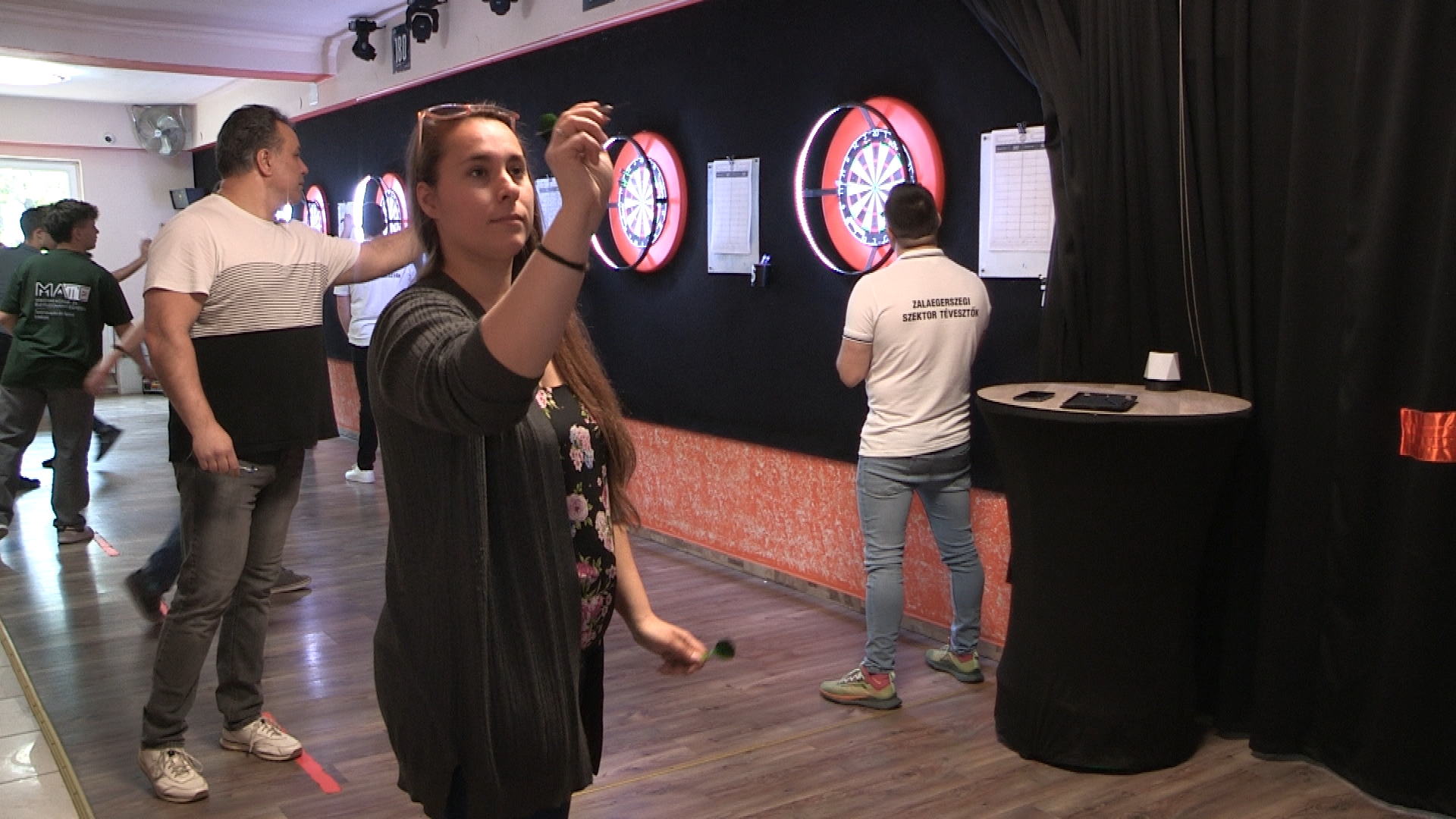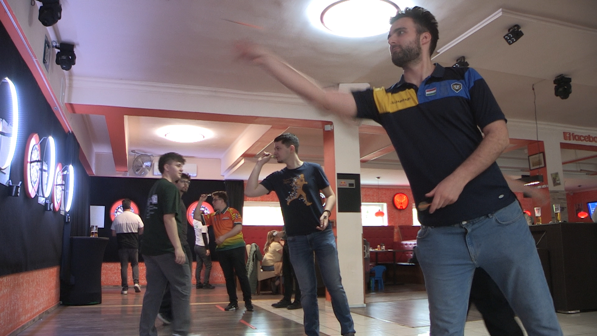 Repülnek a nyilak a darts táblákra. Gyakorolnak az egyetemisták a verseny előtt. Mindannyian a MATE Georgikon Campus által meghirdetett országos darts versenyre érkeztek Keszthelyre. Az egyetemi hallgatóknak 5.alkalommal rendezték meg a városban a versenyt. A korábbi évekhez hasonlóan nők és férfiak is megmérettették magukat a pontosságot és logikát igénylő versenyen."Elmondható a világbajnokság után, hogy rengetegen kezdenek el dartsozni, úgyhogy az év eleji időszak az mindig nagyon sűrű és nagyon sokan kezdik el és hála istennek egyre többen is maradnak ebben a sportban. Nagyon jó látni itt is, hogy a lányok is folyamatosan bővülnek. Én szerintem az első kupán részt is vettem,akkor még csak ketten,hárman. Ma már ha jól tudom öten vannak." - mondta el Neumayer Kitti a Magyar Darts Szövetség operatív vezetője.
