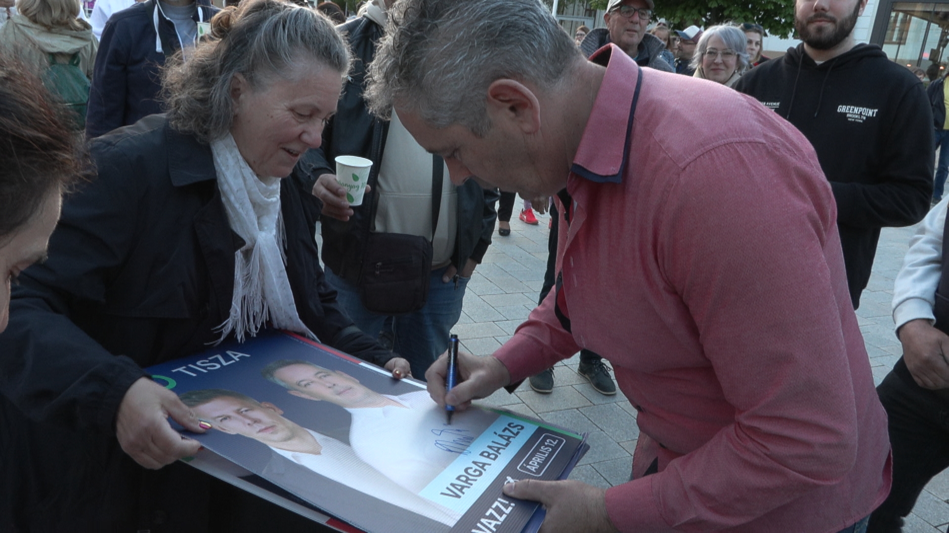 Többen érkeztek választási plakáttal. Aláírást kértek Varga Balázstól, hogy eltegyék az emléket, ami az életükben később egy történelmi eseményt idéz majd fel. Sok fiatal is gratulált és fontosnak érezte, hogy jelen legyen az ünneplésen. Akadt olyan választó is a tömegben, aki elmondta miért A TISZA mellett voksolt."- nyilatkozott Kárász Kristóf.