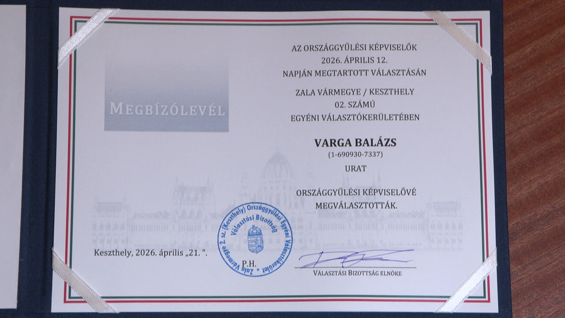 Tapssal köszöntötték Varga Balázst, a Zala 2-es körzet megválasztott országgyűlési képviselőjét. A Tisztelet és Szabadság Párt politikusát a választási bizottság tagjai és szimpatizánsok fogadták a Városháza Dísztermében.