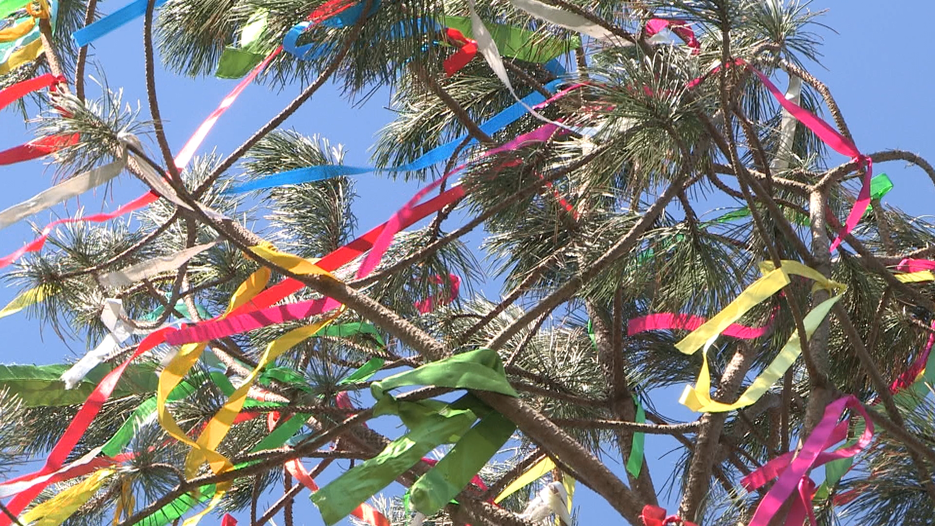 Színes szalagokkal díszítették a fenyő tetején hagyott ágakat a Kárpáti Korzón. Mindenféle színből kerültek rá ékek, hogy messziről is mutassa magát a fa. A felállítás előtt az utolsó simításokkal, a lekérgezéssel is elkészültek. Nagy izgalommal zajlott a munka, ahol kicsik és nagyok együtt serénykedtek, hogy szép májusfája legyen Gyenesdiásnak. Természetesen az üveg ital sem hiányozhatott a tetejéről, ez is hozzátartozik a hagyományhoz.
